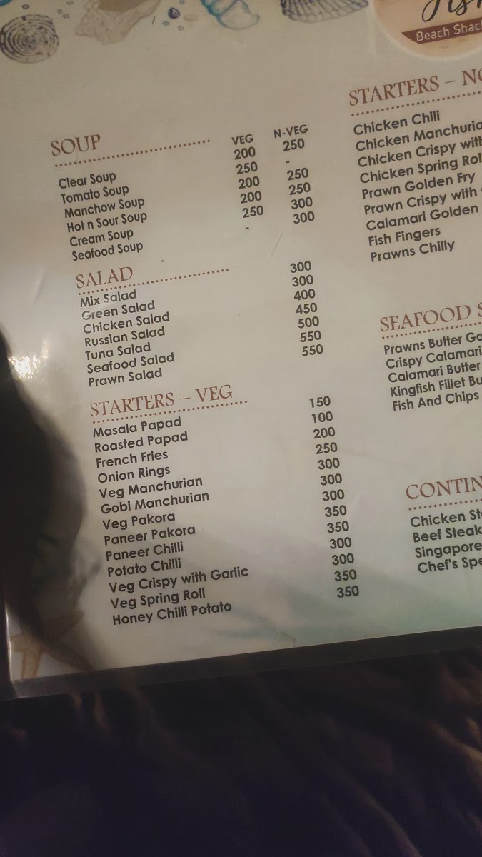 Star fish beach shack Menu
